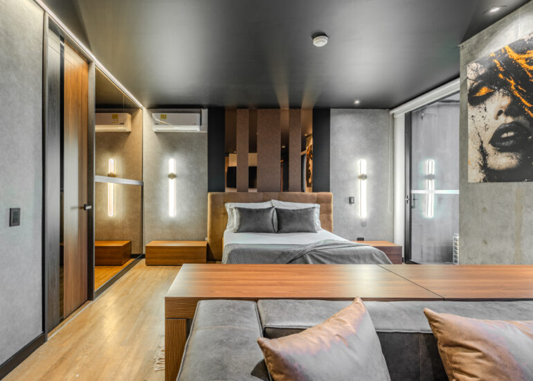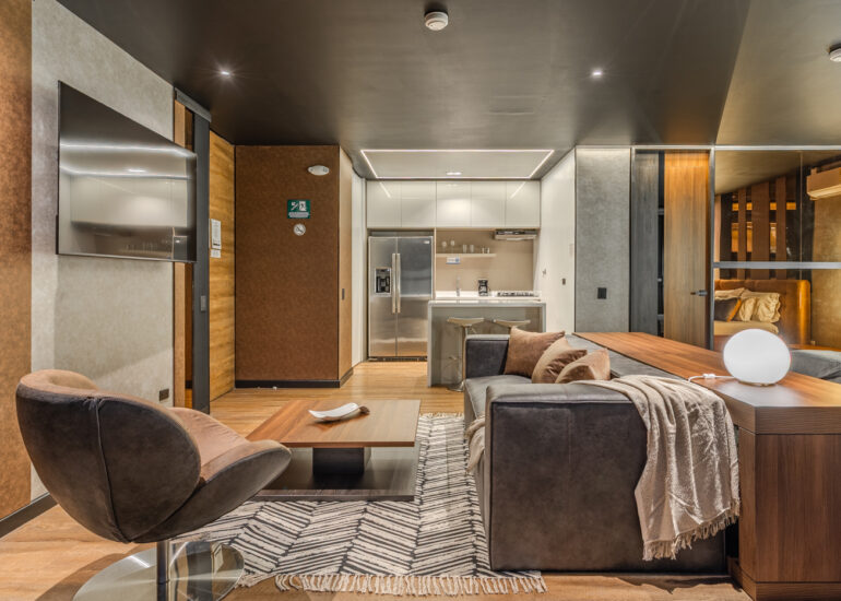Incluye interiores residenciales y una selección de espacios de hospitalidad, abordados desde una perspectiva arquitectónica.